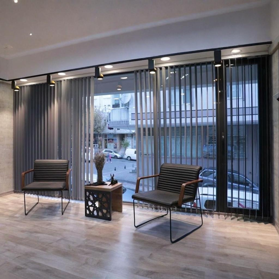 Vertical roller blinds are stylish window covering systems that combine modern design with high functionality, providing excellent light control—especially for large glass surfaces. They offer an ideal solution for offices, workplaces, hotels, meeting rooms, and spaces with large windows.