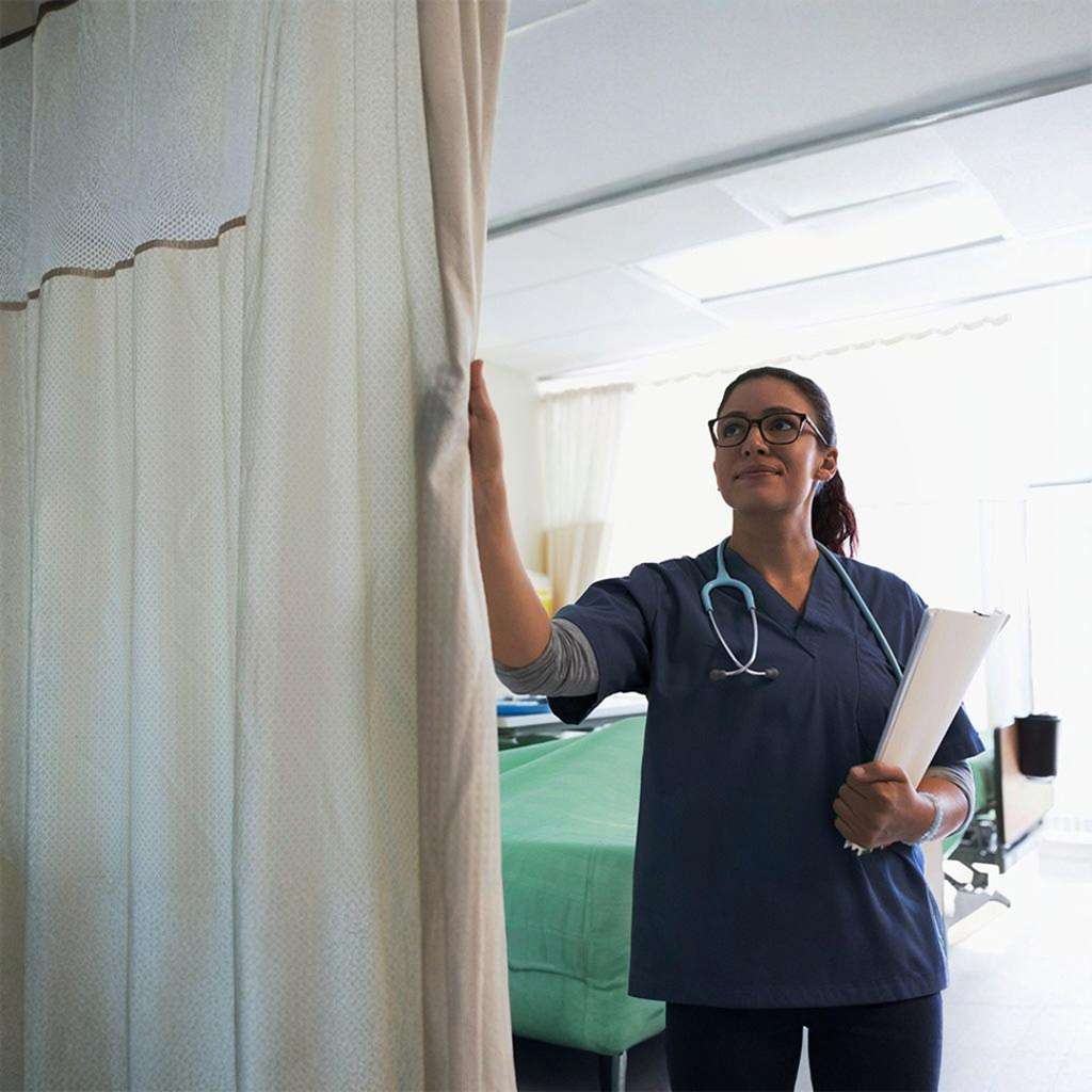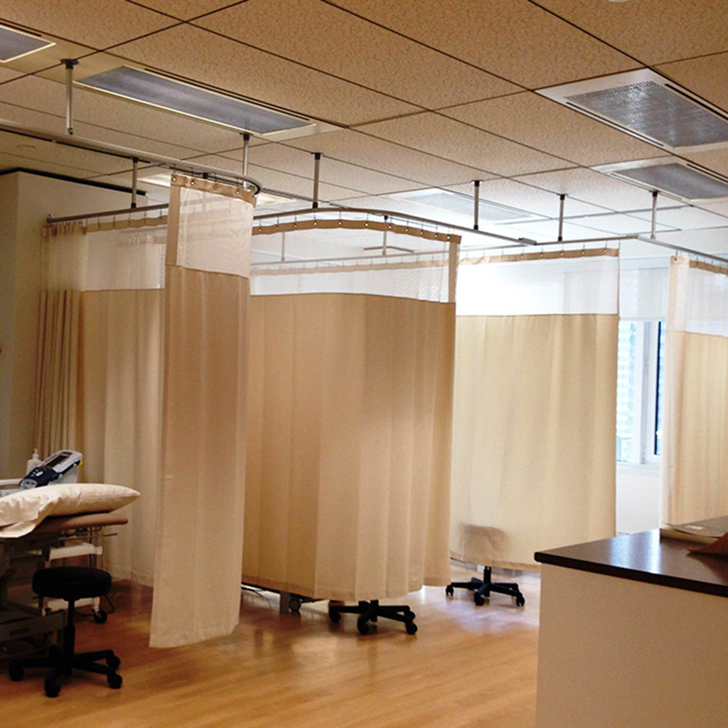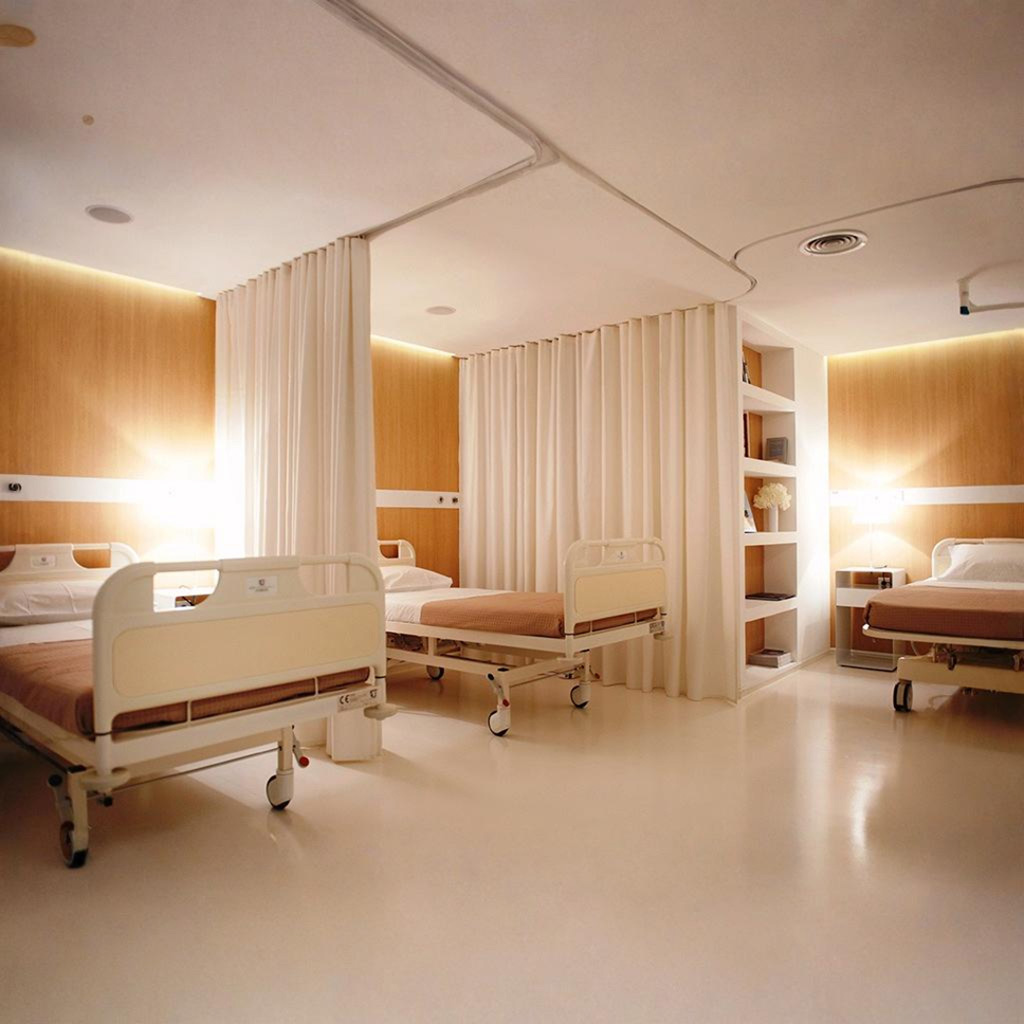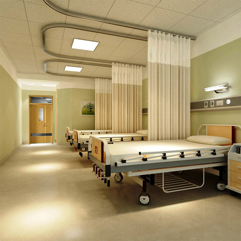Hospital curtains compatible with rail and partition systems provide practical space separation between beds. Custom-made sizing ensures a perfect fit for the space while offering quick installation and ease of use.